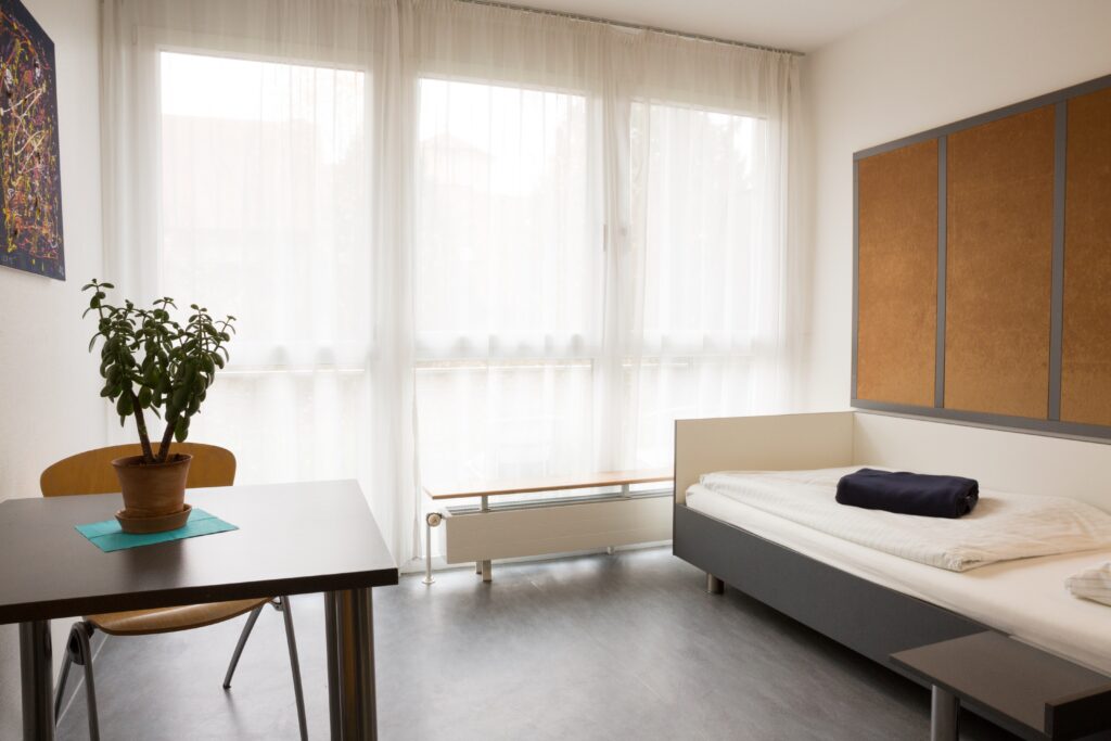 Sie wohnen in Einzel- oder Doppelzimmern größtenteils mit Dusche und WC. Für Sauberkeit und Ordnung in Ihrem Zimmer und Ihrer Station sind Sie selbst verantwortlich.